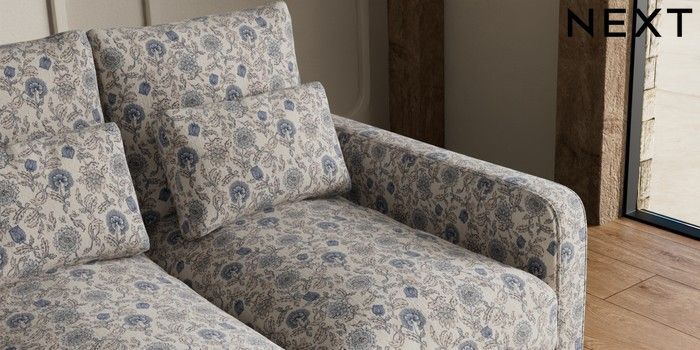 7.3.1 Buy N Premium Farndon Grand Relaxed Sit 2 Seater Small Sofa Relaxed Linen Look Print Woodblock Floral Blue Wooden Glide - Dark from the Seasons online shop