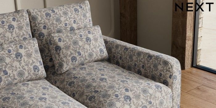 7.3.1 Buy N Premium Farndon Grand Relaxed Sit 2 Seater Small Sofa Relaxed Linen Look Print Woodblock Floral Blue Wooden Glide - Mid from the Seasons online shop
