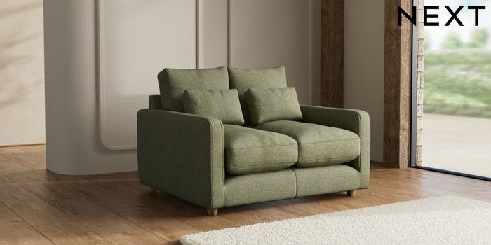 7.3.1 Buy N Premium Farndon Grand Relaxed Sit 2 Seater Small Sofa Tweedy Chenille Mid Moss Green Wooden Glide - Light from the Seasons online shop