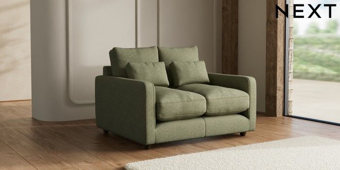 7.3.1 Buy N Premium Farndon Grand Relaxed Sit 2 Seater Small Sofa Tweedy Chenille Mid Moss Green Wooden Glide - Mid from the Seasons online shop