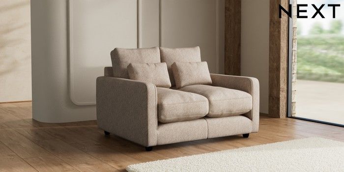 7.3.1 Buy N Premium Farndon Grand Relaxed Sit 2 Seater Small Sofa Tweedy Chenille Mid Natural Wooden Glide - Dark from the Seasons online shop