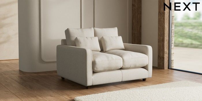 7.3.1 Buy N Premium Farndon Grand Relaxed Sit 2 Seater Small Sofa Tweedy Chenille Oyster Wooden Glide - Mid from the Seasons online shop