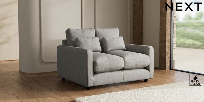 7.3.1 Buy N Premium Farndon Grand Relaxed Sit 2 Seater Small Sofa Woven Chenille Easy Clean Light Grey Wooden Glide - Dark from the Seasons online shop Click here to use our website with more accessibility support, for example screen readers