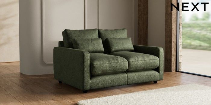 7.3.1 Buy N Premium Farndon Grand Relaxed Sit 2 Seater Sofa Boucle Chenille Dark Moss Green Wooden Glide - Dark from the Seasons online shop