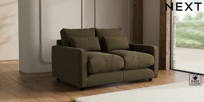 7.3.1 Buy N Premium Farndon Grand Relaxed Sit 2 Seater Sofa Fine Chenille Easy Clean Dark Moss Green Wooden Glide - Dark from the Seasons online shop