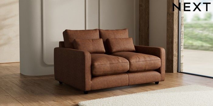 7.3.1 Buy N Premium Farndon Grand Relaxed Sit 2 Seater Sofa Monza Faux Leather Easy Clean Chestnut Brown Wooden Glide - Dark from the Seasons online shop