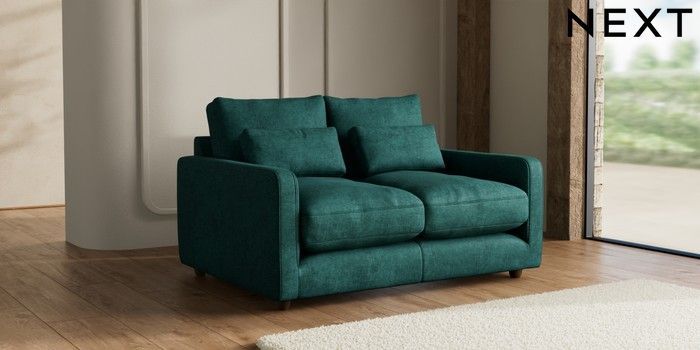 7.3.1 Buy N Premium Farndon Grand Relaxed Sit 2 Seater Sofa Plush Chenille Dark Teal Green Wooden Glide - Mid from the Seasons online shop