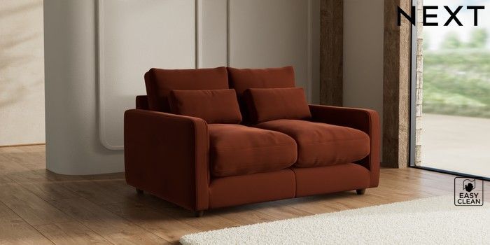 7.3.1 Buy N Premium Farndon Grand Relaxed Sit 2 Seater Sofa Plush Velvet Easy Clean Ginger Orange Wooden Glide - Mid from the Seasons online shop