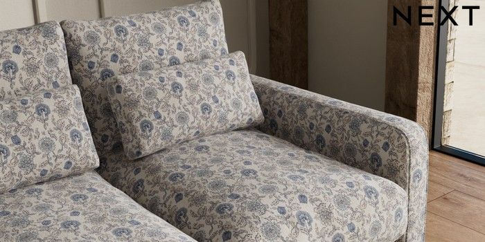 7.3.1 Buy N Premium Farndon Grand Relaxed Sit 2 Seater Sofa Relaxed Linen Look Print Woodblock Floral Blue Wooden Glide - Dark from the Seasons online shop