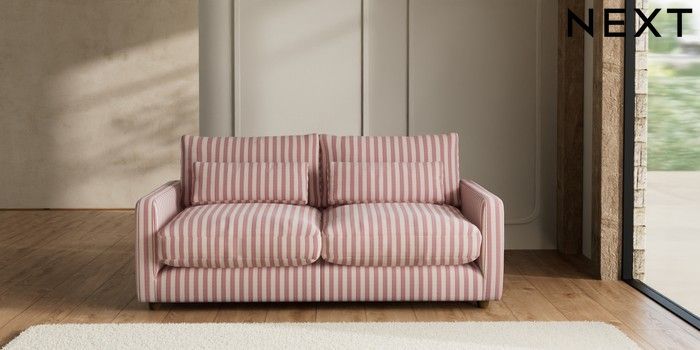 7.3.1 Buy N Premium Farndon Grand Relaxed Sit 3 Seater Sofa Bold Chenille Stripe Dark Pink Wooden Glide - Mid from the Seasons online shop Click here to use our website with more accessibility support, for example screen readers