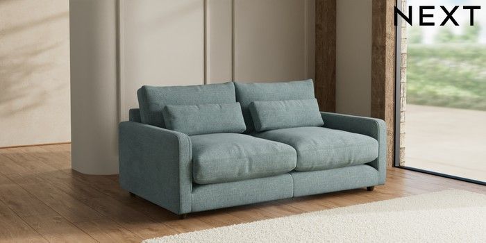 7.3.1 Buy N Premium Farndon Grand Relaxed Sit 3 Seater Sofa Chunky Chenille Light Teal Green Wooden Glide - Mid from the Seasons online shop Click here to use our website with more accessibility support, for example screen readers