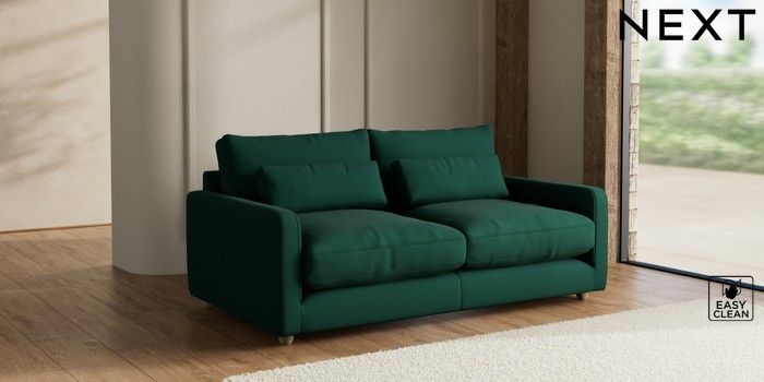 7.3.1 Buy N Premium Farndon Grand Relaxed Sit 3 Seater Sofa Plush Velvet Easy Clean Bottle Green Wooden Glide - Light from the Seasons online shop