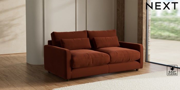 7.3.1 Buy N Premium Farndon Grand Relaxed Sit 3 Seater Sofa Plush Velvet Easy Clean Ginger Orange Wooden Glide - Mid from the Seasons online shop