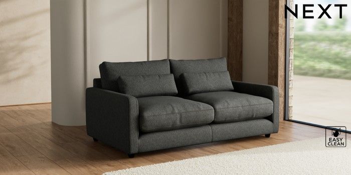 7.3.1 Buy N Premium Farndon Grand Relaxed Sit 3 Seater Sofa Tweedy Blend Easy Clean Charcoal Grey Wooden Glide - Dark from the Seasons online shop