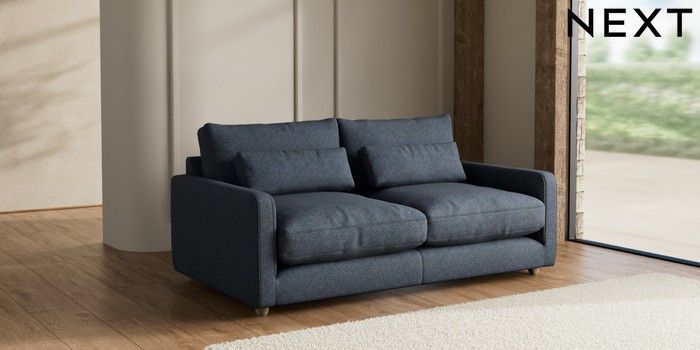 7.3.1 Buy N Premium Farndon Grand Relaxed Sit 3 Seater Sofa Tweedy Chenille Navy Blue Wooden Glide - Light from the Seasons online shop