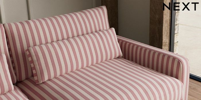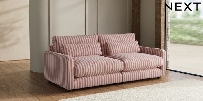 7.3.1 Buy N Premium Farndon Grand Relaxed Sit 4 Seater Sofa Bold Chenille Stripe Dark Pink Wooden Glide - Mid from the Seasons online shop Click here to use our website with more accessibility support, for example screen readers