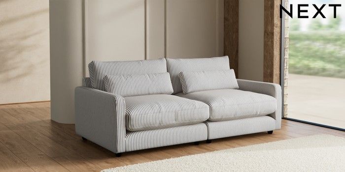 7.3.1 Buy N Premium Farndon Grand Relaxed Sit 4 Seater Sofa Chenille Stripe Slate Blue Wooden Glide - Dark from the Seasons online shop Click here to use our website with more accessibility support, for example screen readers