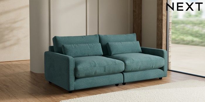 7.3.1 Buy N Premium Farndon Grand Relaxed Sit 4 Seater Sofa Chunky Chenille Mid Teal Green Wooden Glide - Dark from the Seasons online shop