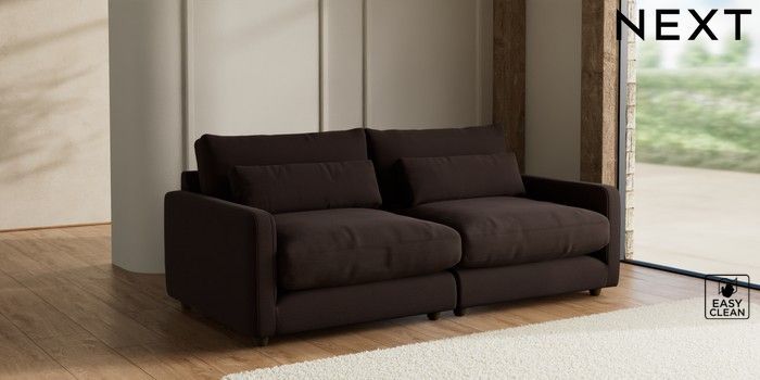 7.3.1 Buy N Premium Farndon Grand Relaxed Sit 4 Seater Sofa Fine Chenille Easy Clean Chocolate Brown Wooden Glide - Mid from the Seasons online shop
