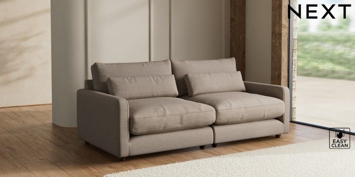 7.3.1 Buy N Premium Farndon Grand Relaxed Sit 4 Seater Sofa Fine Chenille Easy Clean Mid Taupe Brown Wooden Glide - Mid from the Seasons online shop