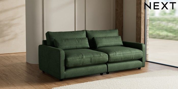 7.3.1 Buy N Premium Farndon Grand Relaxed Sit 4 Seater Sofa Luxe Chenille Dark Green Wooden Glide - Dark from the Seasons online shop