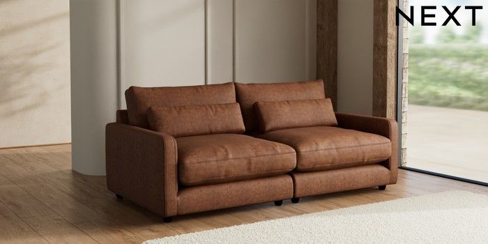 7.3.1 Buy N Premium Farndon Grand Relaxed Sit 4 Seater Sofa Monza Faux Leather Easy Clean Chestnut Brown Wooden Glide - Dark from the Seasons online shop