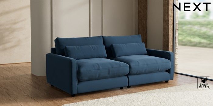 7.3.1 Buy N Premium Farndon Grand Relaxed Sit 4 Seater Sofa Plush Velvet Easy Clean Airforce Blue Wooden Glide - Dark from the Seasons online shop