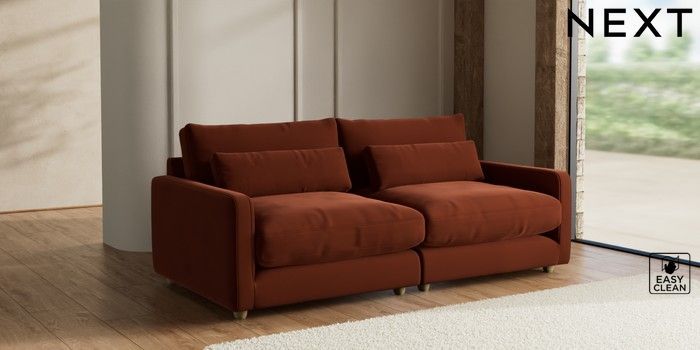 7.3.1 Buy N Premium Farndon Grand Relaxed Sit 4 Seater Sofa Plush Velvet Easy Clean Ginger Orange Wooden Glide - Light from the Seasons online shop