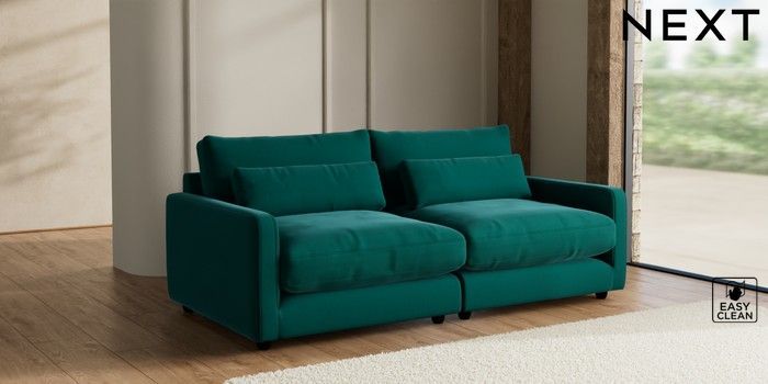 7.3.1 Buy N Premium Farndon Grand Relaxed Sit 4 Seater Sofa Plush Velvet Easy Clean Juniper Green Wooden Glide - Dark from the Seasons online shop