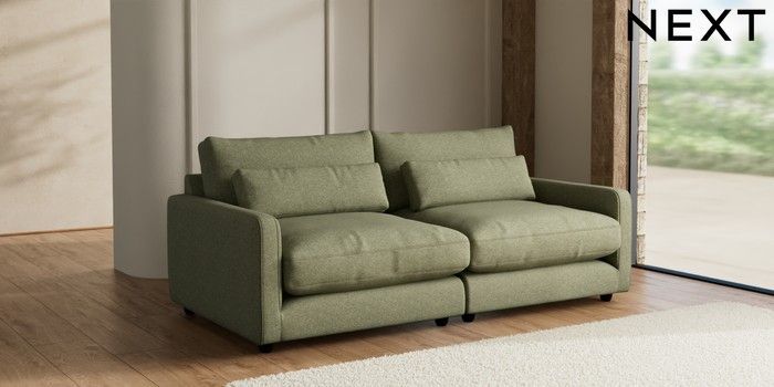 7.3.1 Buy N Premium Farndon Grand Relaxed Sit 4 Seater Sofa Tweedy Chenille Mid Moss Green Wooden Glide - Dark from the Seasons online shop