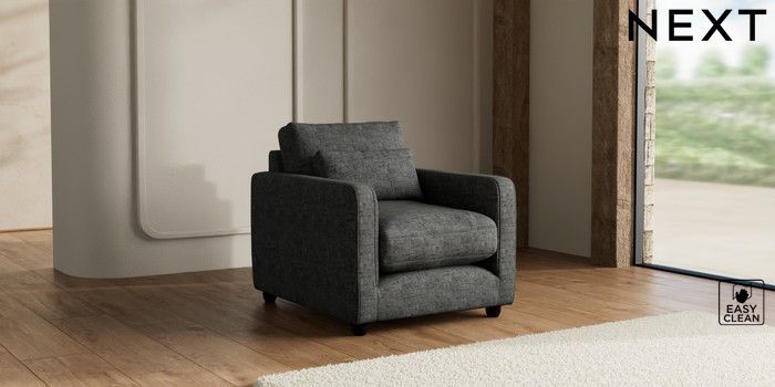 7.3.1 Buy N Premium Farndon Grand Relaxed Sit Armchair Boucle Weave Easy Clean Charcoal Grey Wooden Glide - Dark from the Seasons online shop