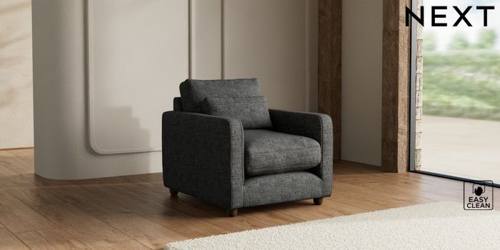 7.3.1 Buy N Premium Farndon Grand Relaxed Sit Armchair Boucle Weave Easy Clean Charcoal Grey Wooden Glide - Mid from the Seasons online shop