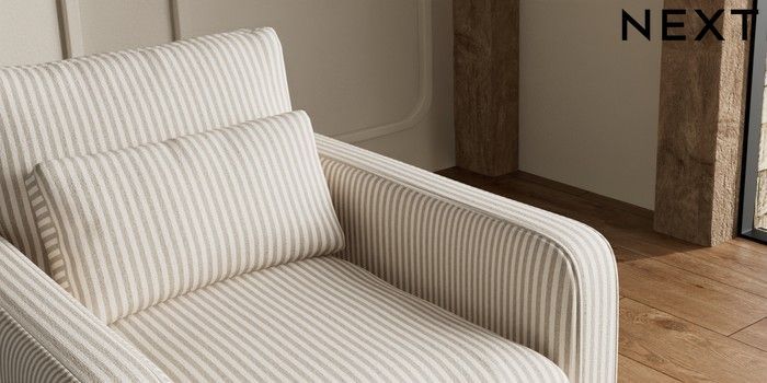7.3.1 Buy N Premium Farndon Grand Relaxed Sit Armchair Chenille Stripe Natural Wooden Glide - Dark from the Seasons online shop