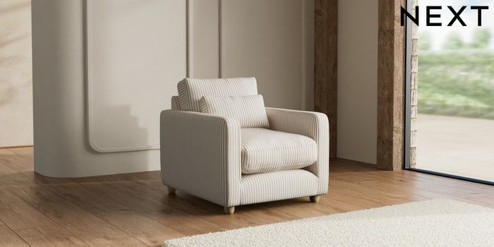 7.3.1 Buy N Premium Farndon Grand Relaxed Sit Armchair Chenille Stripe Natural Wooden Glide - Light from the Seasons online shop Click here to use our website with more accessibility support, for example screen readers
