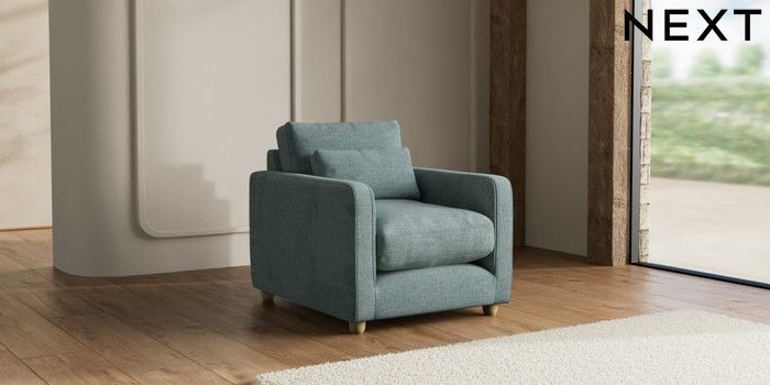 7.3.1 Buy N Premium Farndon Grand Relaxed Sit Armchair Chunky Chenille Light Teal Green Wooden Glide - Light from the Seasons online shop
