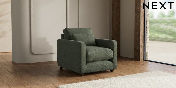 7.3.1 Buy N Premium Farndon Grand Relaxed Sit Armchair Chunky Texture Mid Forest Green Wooden Glide - Mid from the Seasons online shop