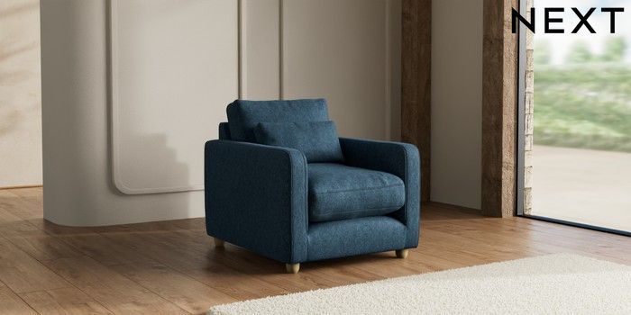 7.3.1 Buy N Premium Farndon Grand Relaxed Sit Armchair Cotswold Chenille Dark Blue Wooden Glide - Light from the Seasons online shop