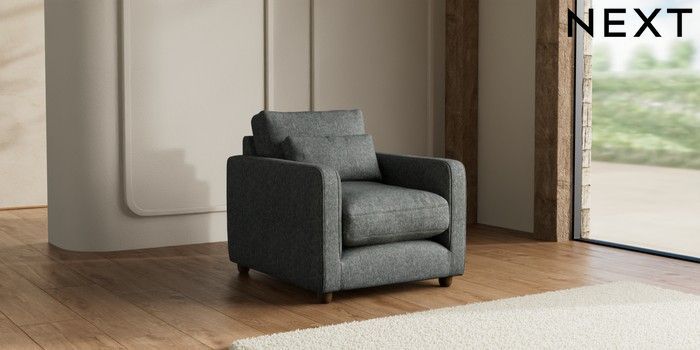 7.3.1 Buy N Premium Farndon Grand Relaxed Sit Armchair Cotswold Chenille Dark Grey Wooden Glide - Mid from the Seasons online shop