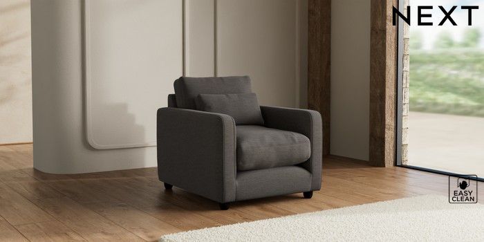 7.3.1 Buy N Premium Farndon Grand Relaxed Sit Armchair Fine Chenille Easy Clean Dark Smoke Grey Wooden Glide - Dark from the Seasons online shop