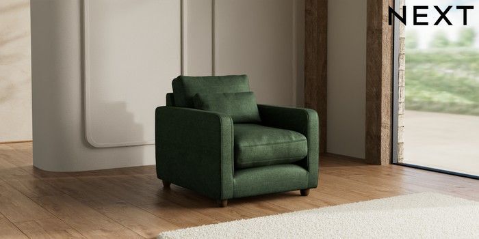 7.3.1 Buy N Premium Farndon Grand Relaxed Sit Armchair Luxe Chenille Dark Green Wooden Glide - Mid from the Seasons online shop