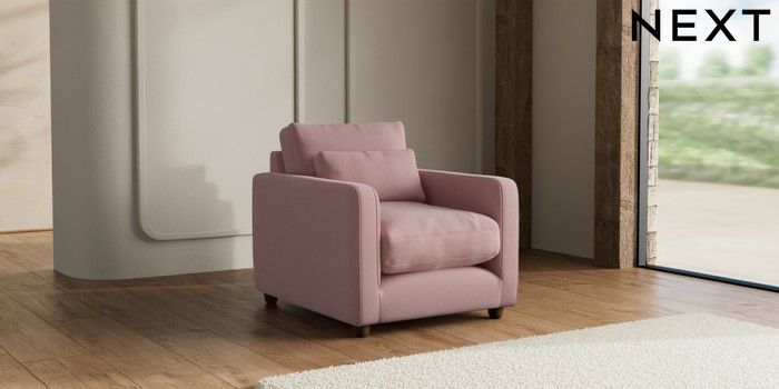 7.3.1 Buy N Premium Farndon Grand Relaxed Sit Armchair Natural Mix Light Rose Pink Wooden Glide - Mid from the Seasons online shop