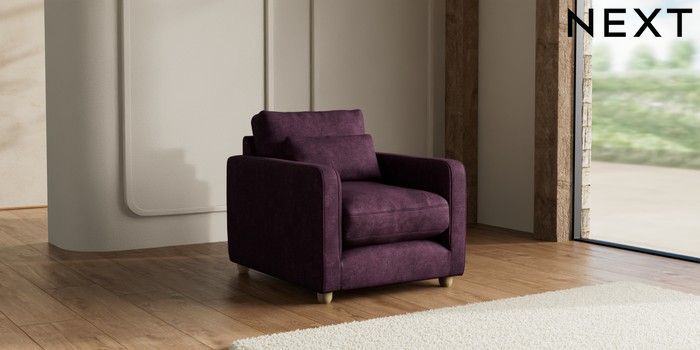 7.3.1 Buy N Premium Farndon Grand Relaxed Sit Armchair Plush Chenille Dark Plum Purple Wooden Glide - Light from the Seasons online shop