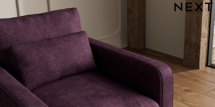 7.3.1 Buy N Premium Farndon Grand Relaxed Sit Armchair Plush Chenille Dark Plum Purple Wooden Glide - Mid from the Seasons online shop