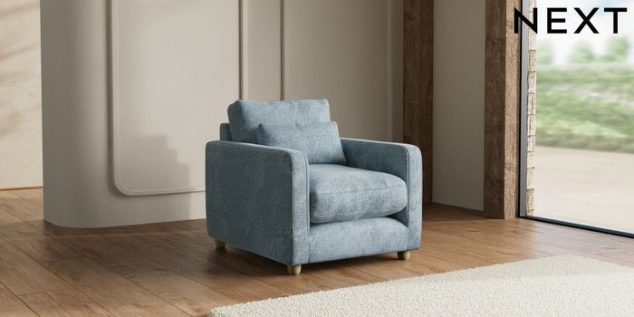 7.3.1 Buy N Premium Farndon Grand Relaxed Sit Armchair Plush Chenille Light Blue Wooden Glide - Light from the Seasons online shop Click here to use our website with more accessibility support, for example screen readers