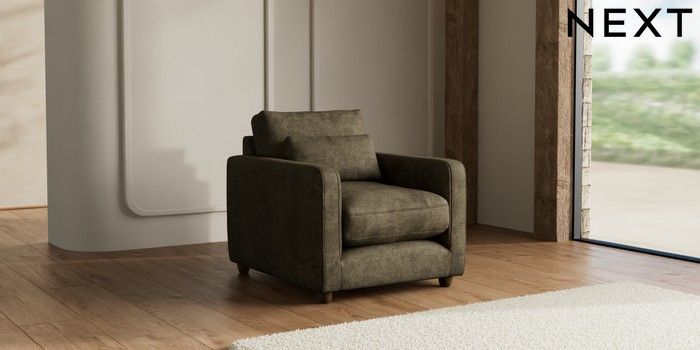 7.3.1 Buy N Premium Farndon Grand Relaxed Sit Armchair Plush Chenille Moss Green Wooden Glide - Mid from the Seasons online shop