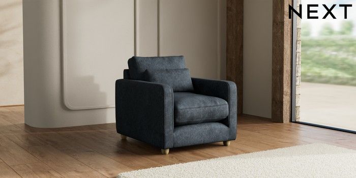 7.3.1 Buy N Premium Farndon Grand Relaxed Sit Armchair Plush Chenille Slate Blue Wooden Glide - Light from the Seasons online shop