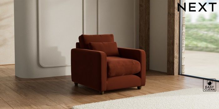 7.3.1 Buy N Premium Farndon Grand Relaxed Sit Armchair Plush Velvet Easy Clean Ginger Orange Wooden Glide - Mid from the Seasons online shop