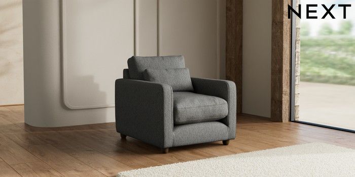 7.3.1 Buy N Premium Farndon Grand Relaxed Sit Armchair Tweedy Chenille Dark Grey Wooden Glide - Mid from the Seasons online shop
