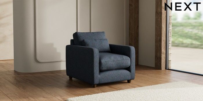 7.3.1 Buy N Premium Farndon Grand Relaxed Sit Armchair Tweedy Chenille Navy Blue Wooden Glide - Mid from the Seasons online shop