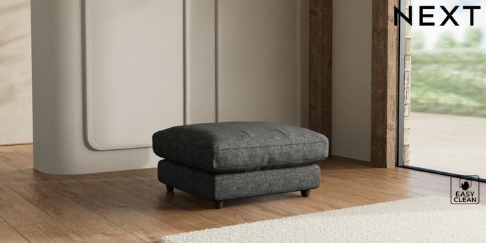 7.3.1 Buy N Premium Farndon Grand Relaxed Sit Extra Large Footstool Boucle Weave Easy Clean Charcoal Grey Wooden Glide - Mid from the Seasons online shop